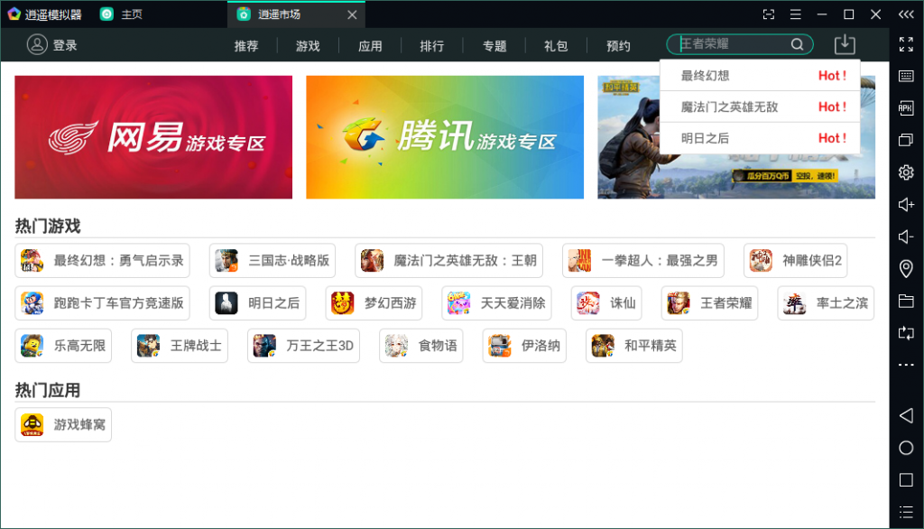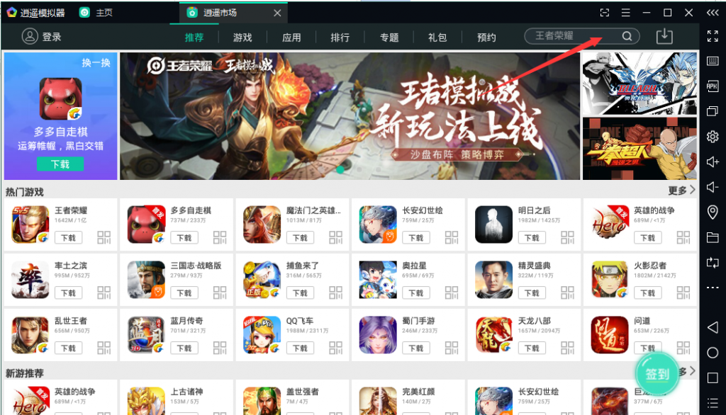 5、在逍遙市場里面玩家可以搜索下載海量的游戲,還可以通過搜索尋找自己的游戲,點擊下載你要玩的游戲之后,等待下載完成會自動進行安裝,安裝好之后直接打開登陸游戲就可以電腦上暢玩手游。