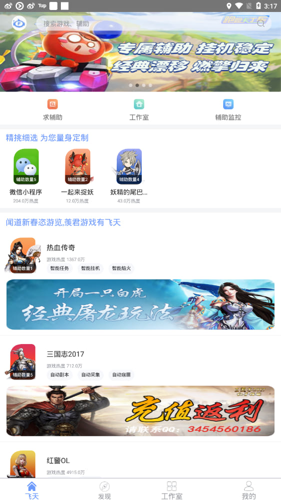 天助手是一款基于手機游戲興趣愛好的永久免費的手游輔助軟件,為市面上COC、王者榮耀、天龍八部、夢幻西游、問道、微信小游戲等諸多熱門、經(jīng)典、新鮮手機游戲提供優(yōu)質(zhì)免費手游輔助腳本資源,這里為大家提供飛天助手下載,需要的玩家可在本頁下載飛天助手官網(wǎng),體驗海量優(yōu)質(zhì)免費輔助,所有手游輔助均可永久免費使用!