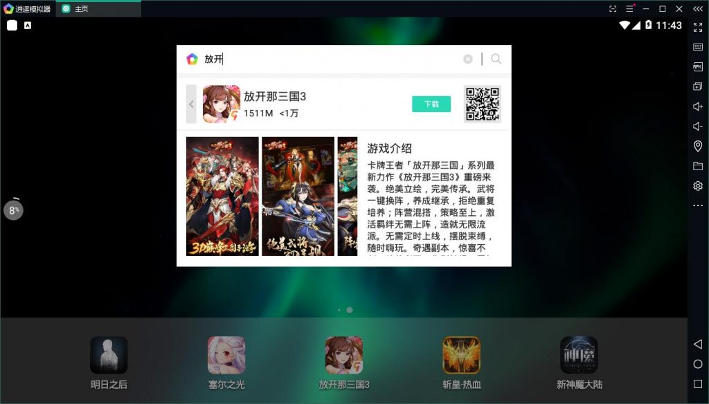 打開逍遙安卓模擬器,搜索下載放開那三國3手游電腦版.
