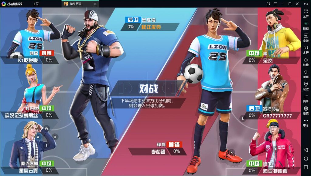 4V4真人實時競技,支持8人及以下任意人數(shù)比賽,隨時隨地、勁爽游戲,贏取街頭綠茵比賽勝利!