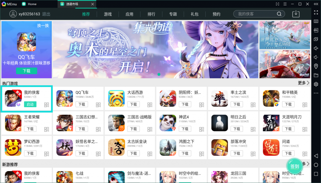 我的俠客安裝好之后直接打開,在里面的逍遙市場里面可以直接搜索下載我的俠客,然后點擊就會自動下載安裝好。