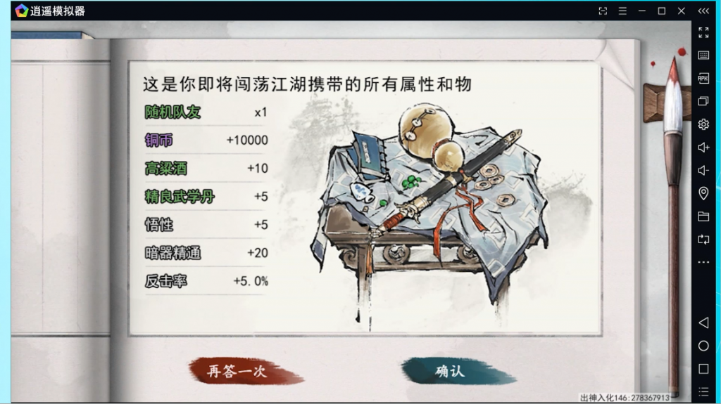 選完之后,就會出現(xiàn)屬性界面和所攜帶的物品,銅幣毫無疑問的是紫色的高價值的物品,沖沖沖!帶著萬貫錢財闖蕩江湖~