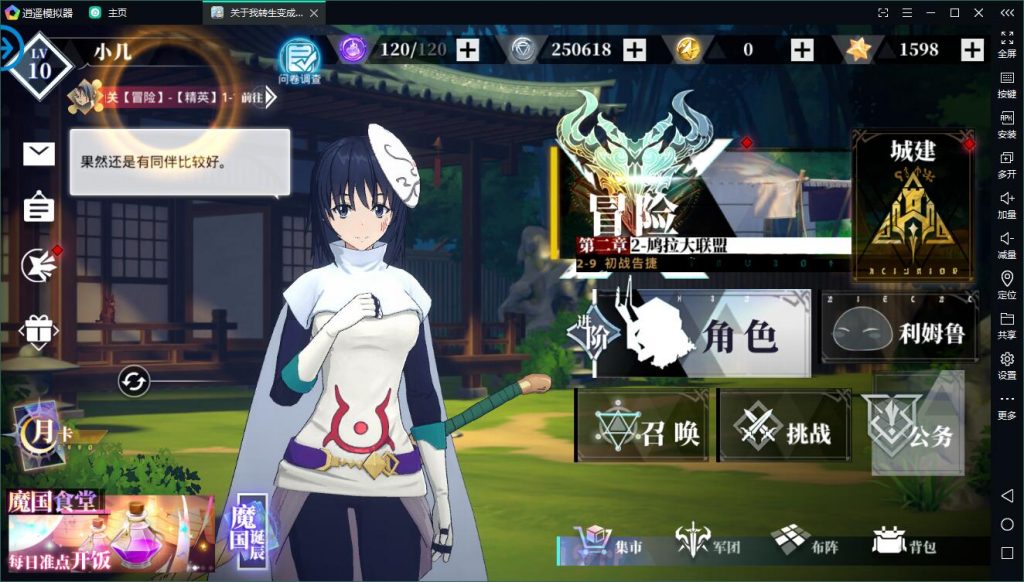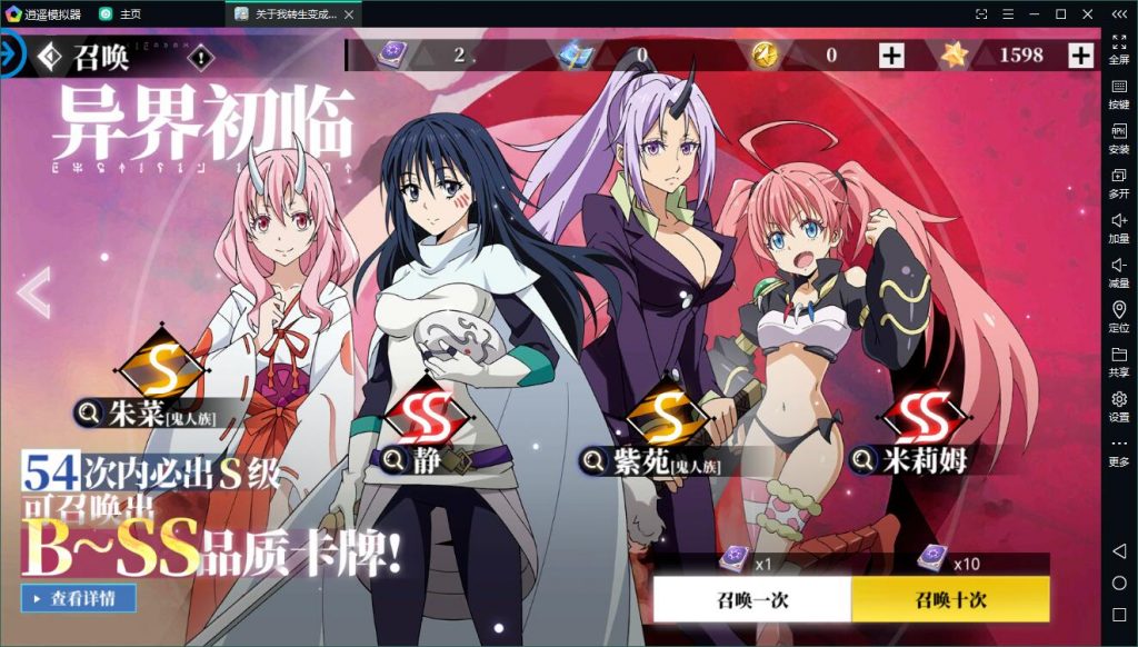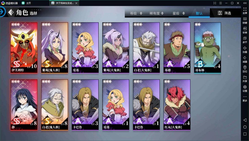 現(xiàn)在可以直接在電腦上玩關(guān)于我轉(zhuǎn)生變成史萊姆這檔事電腦版,賬號和手機(jī)是互通的。只需要使用逍遙模擬器即可,流暢無卡頓,很適合玩關(guān)于我轉(zhuǎn)生變成史萊姆這檔事這種卡牌回合制游戲。