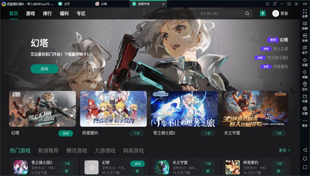 現(xiàn)在可以直接在電腦上玩幻塔電腦版,賬號和手機是互通的。只需要使用逍遙模擬器即可,流暢無卡頓,現(xiàn)在已經(jīng)為玩家們適配好了按鍵映射,可以直接使用鍵盤進行操控,很適合玩幻塔這種mmorpg游戲。