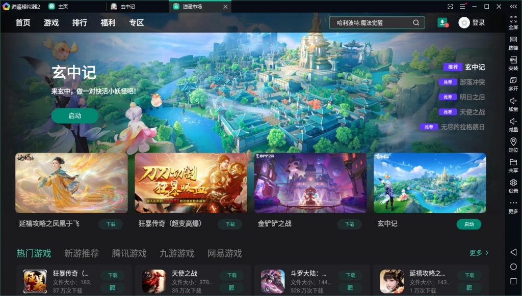 現(xiàn)在可以直接在電腦上玩玄中記電腦版,賬號(hào)和手機(jī)是互通的。只需要使用逍遙模擬器即可,流暢無(wú)卡頓,很適合玩玄中記這種開放世界游戲。