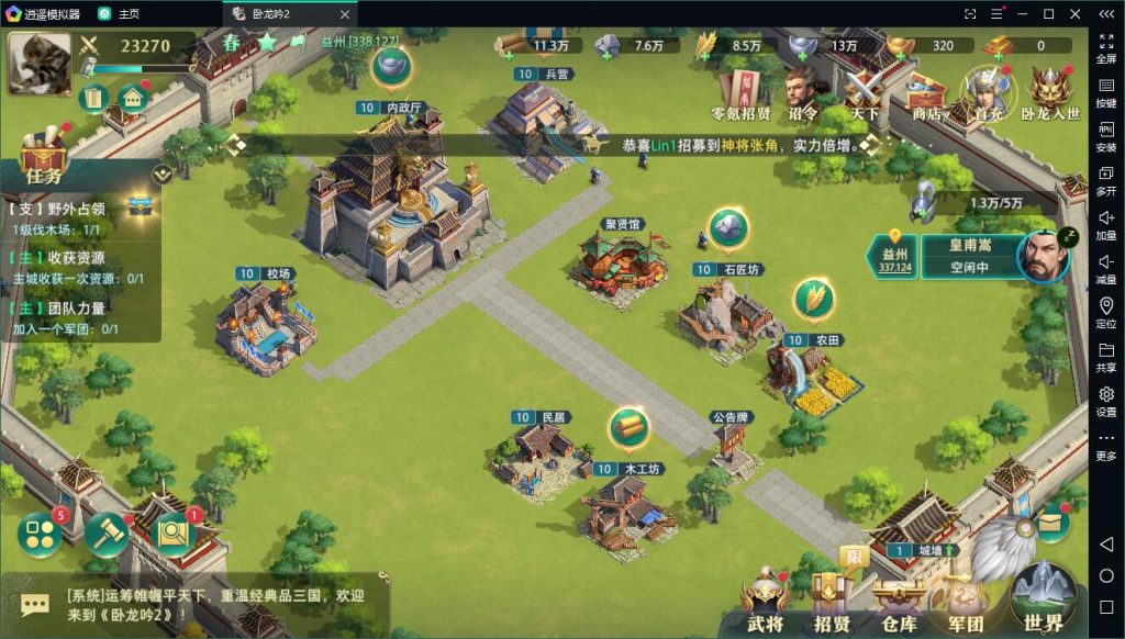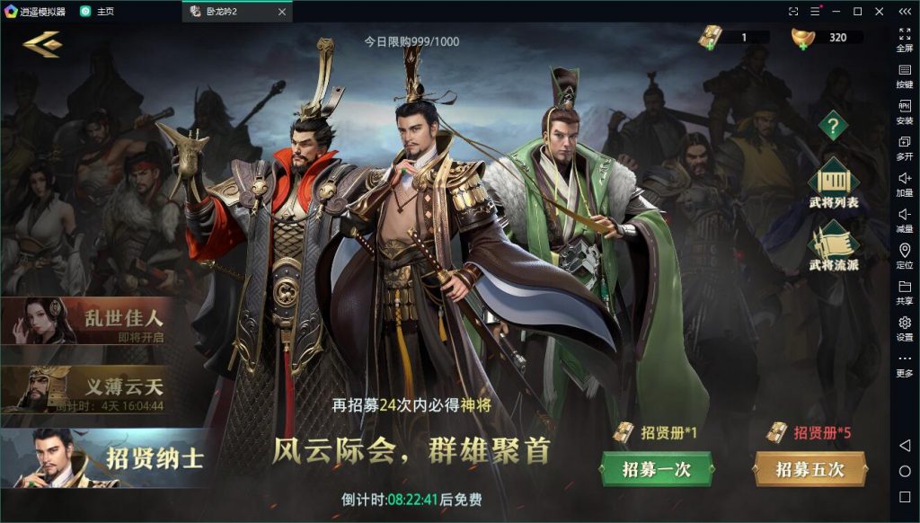 現(xiàn)在可以直接在電腦上玩臥龍吟2電腦版,賬號和手機(jī)是互通的。只需要使用逍遙模擬器即可,流暢無卡頓,很適合玩臥龍吟2這種SLG游戲。