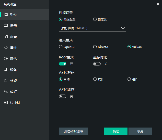 此時在設(shè)置欄中切換渲染模式(OpenGL/DirectX/Vulkan)
