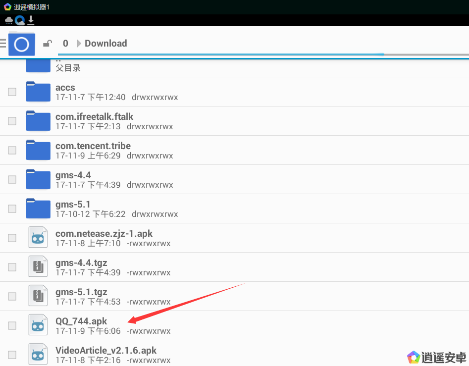 APK無法安裝/下載文件無法打開解決方法 最近修改日期:2024-2-21 例如:qq安裝包為例,在下載里無法打開 1、點(diǎn)擊文件管理器 點(diǎn)擊內(nèi)存設(shè)置 打開 download 下載文件夾 找到剛剛下載的qq點(diǎn)擊進(jìn)行安裝 2、打開共享文件夾 打開共享下載文件夾 就可以看到你剛剛下載的apk 然后把a(bǔ)pk文件拖進(jìn)模擬器窗口中安裝