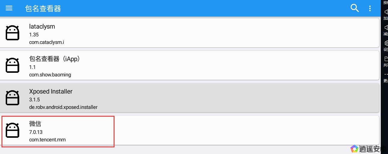 1.打開 包名查看器 找到微信包名 鼠標左鍵長按微信 包名自帶復(fù)制 com.tencent.mm 或者陌陌 的 com.immomo.momo(記錄好備用)