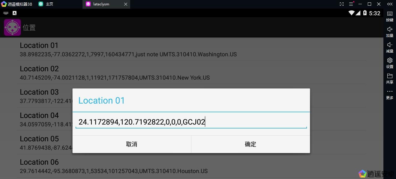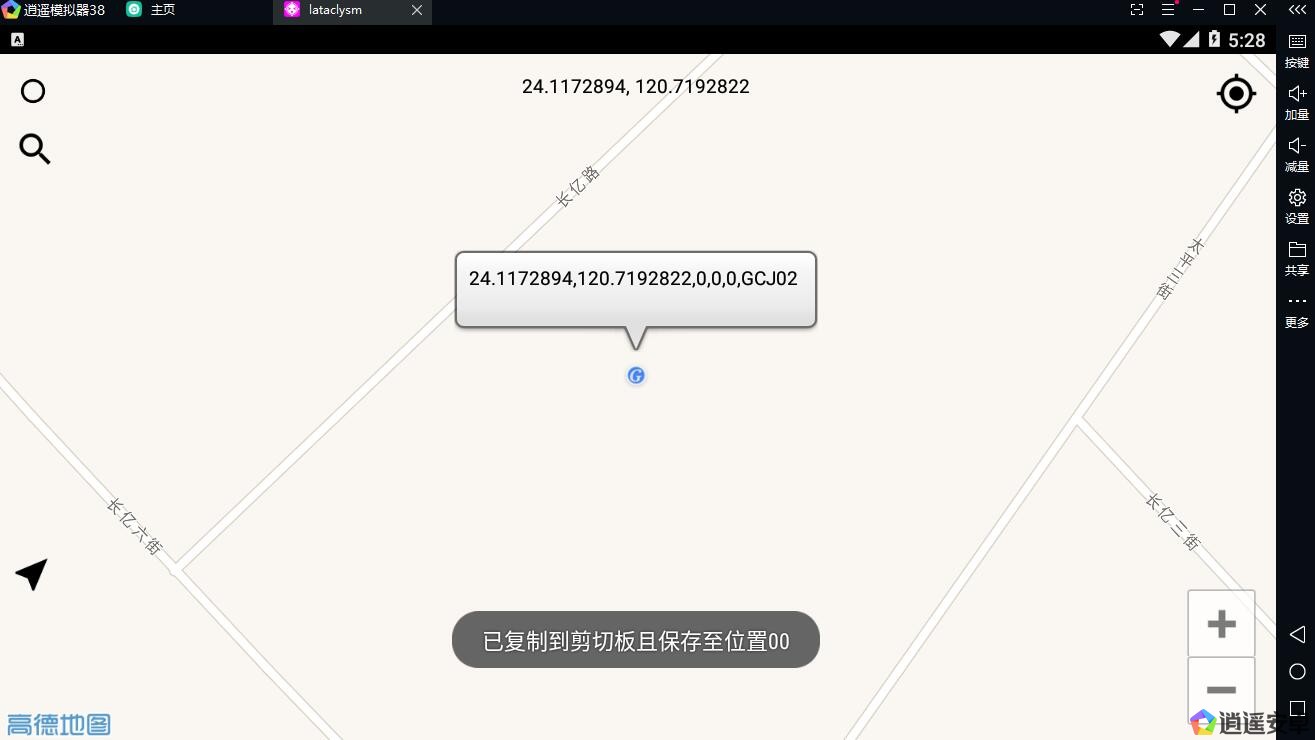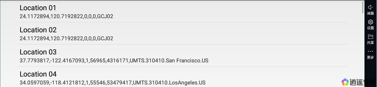 24.1172894,120.7192822,0,0,0,GCJ02 (自己粘貼在文本保存?zhèn)溆茫?br />然后點擊 模擬器后退按鍵