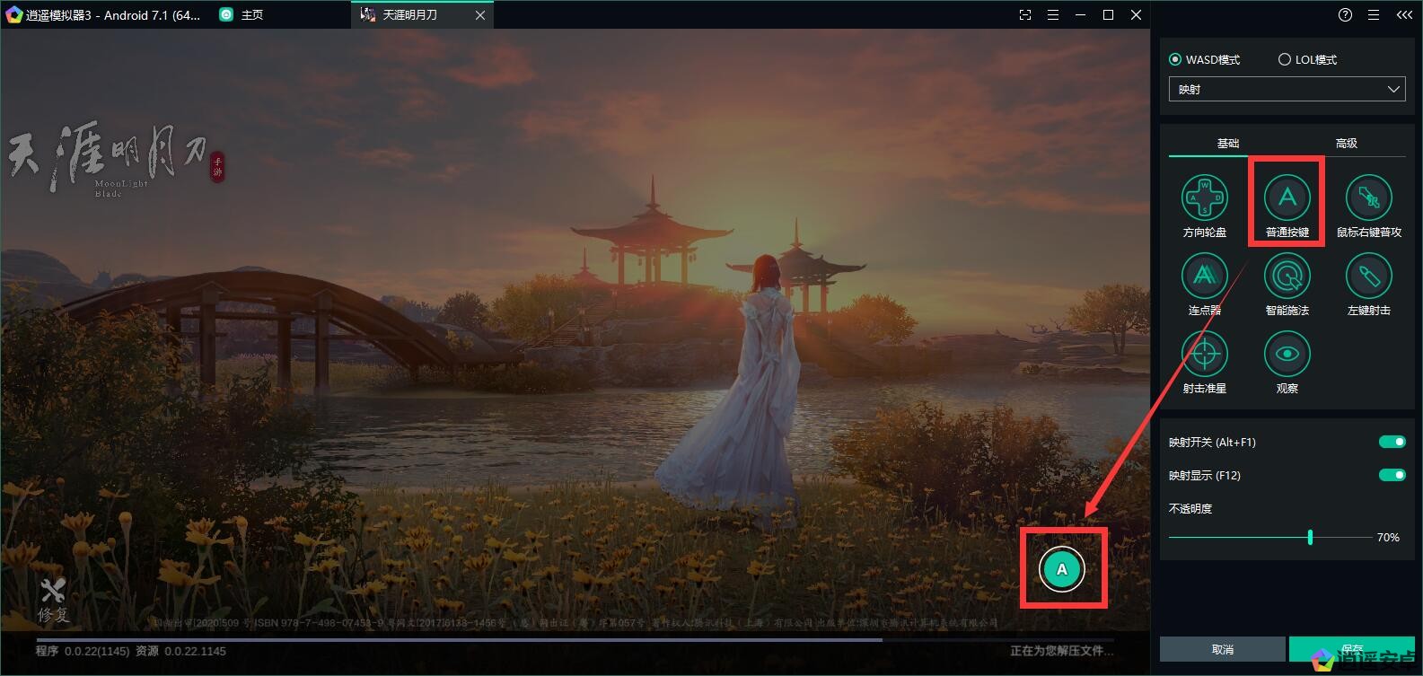 把點(diǎn)擊鍵拖拽到游戲?qū)?yīng)界面,可以設(shè)置攻擊、打開(kāi)背包等功能。