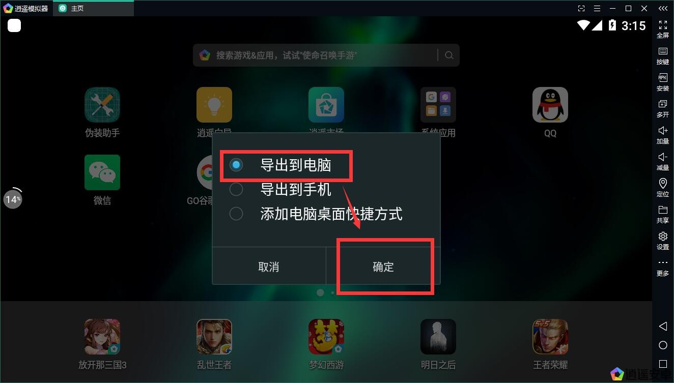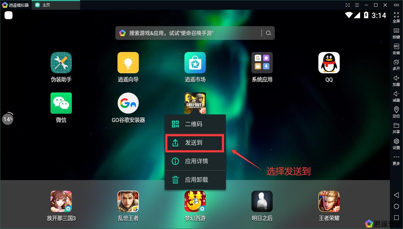 如何把模擬器上的游戲/應(yīng)用導(dǎo)出到電腦 最近修改日期:2024-2-21 本文介紹如何將模擬器內(nèi)的應(yīng)用導(dǎo)出到電腦 一、鼠標(biāo)長(zhǎng)按需要導(dǎo)出的應(yīng)用圖標(biāo) 二、點(diǎn)擊“發(fā)送到”選項(xiàng) 三、選擇導(dǎo)出到電腦 四、選擇接收APK的電腦文件夾即可