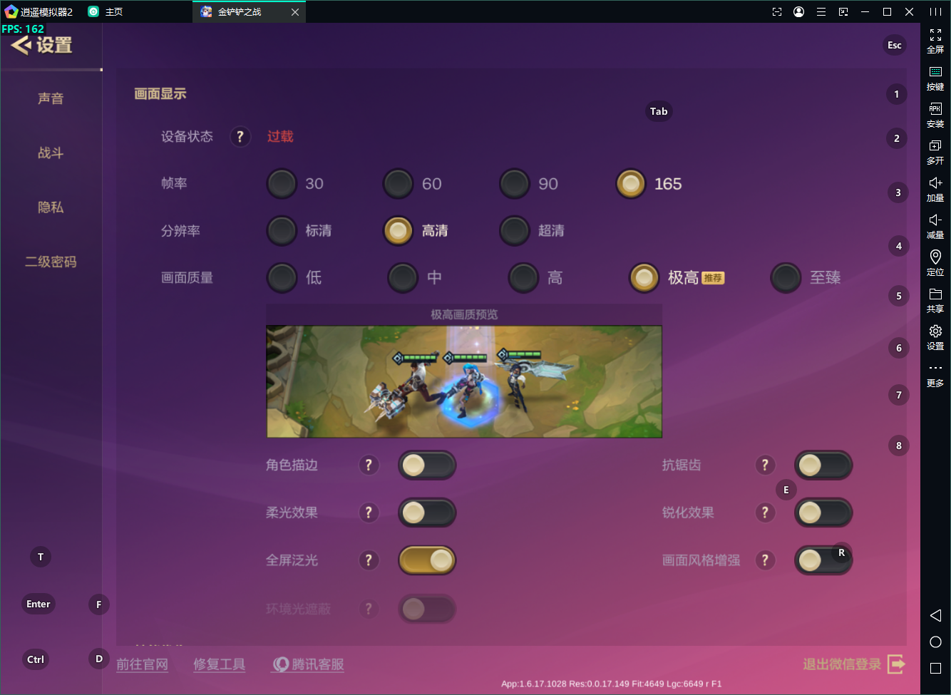 ③重啟模擬器,打開游戲設(shè)置界面,勾選想要的幀率即可