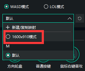 打開按鍵映射界面,選擇“1600×910模式”切換到對應(yīng)的按鍵模式
