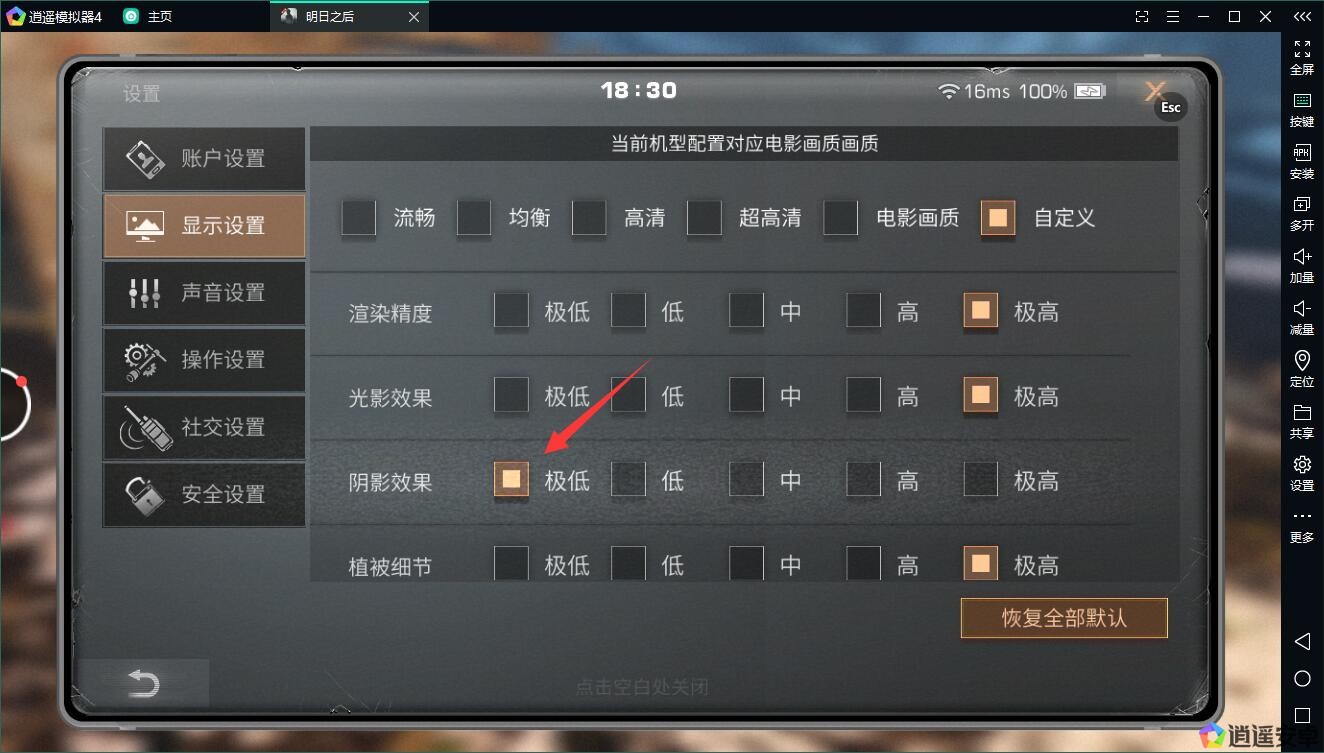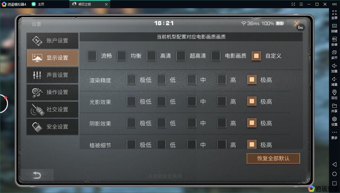 使用逍遙安卓模擬器進(jìn)入明日之后可以將游戲調(diào)整為電影級別畫質(zhì),高幀率進(jìn)行游戲