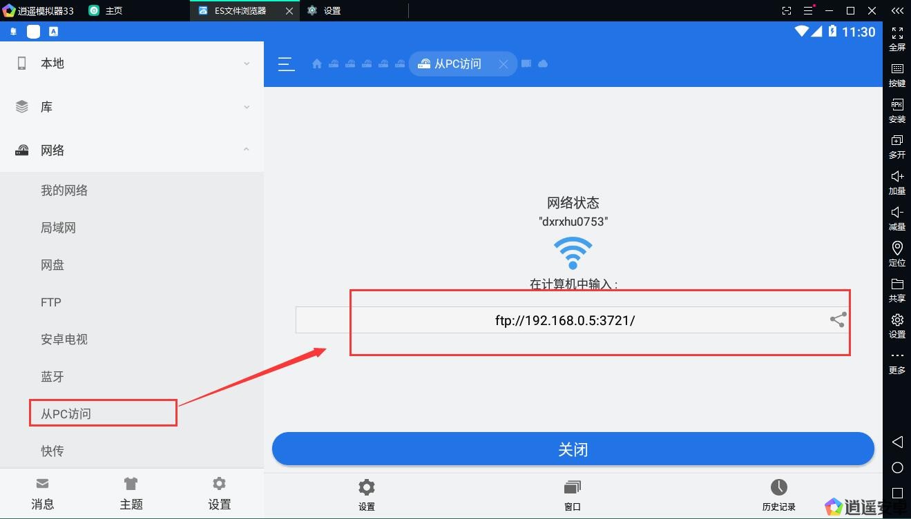 電腦如何直接訪問模擬器數(shù)據(jù)(直接訪問安卓目錄WiFi1) 最近修改日期:2024-2-21 1.模擬器 橋接網(wǎng)絡(luò) 選擇網(wǎng)卡 點(diǎn)擊確定重啟模擬器 2.逍遙市場(chǎng)里 下載ES文件管理器 版本(4.2以上才行)模擬器 里 打開ES文件 選擇 從PC訪問 出現(xiàn)網(wǎng)址 復(fù)制 3.打開我的 電腦 輸入 模擬器里顯示的地址 ftp://192.168.0.5:3721 回車 4.可以直接添加文件訪問 DCIM 就是安卓相冊(cè)目錄說明 相冊(cè)相當(dāng)于安卓系統(tǒng)相冊(cè) 下載安卓系統(tǒng)下載文件夾