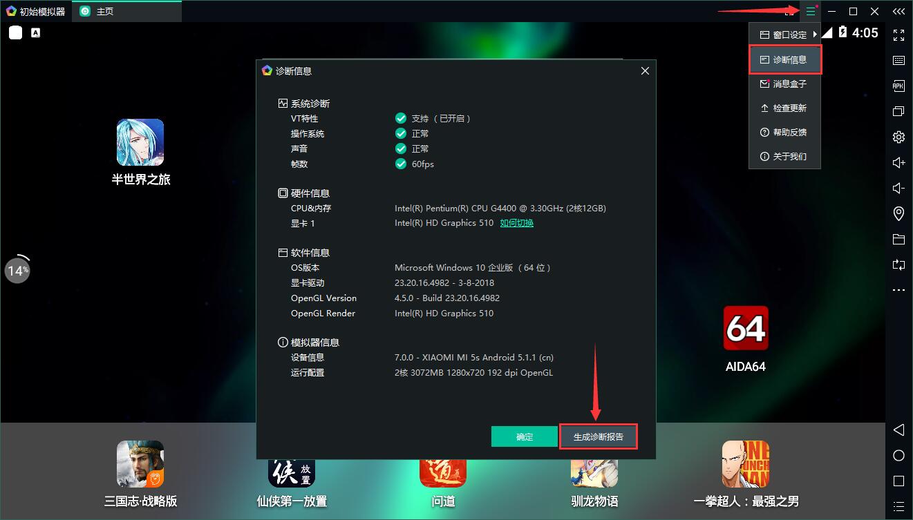 點(diǎn)擊模擬器菜單欄,選擇診斷信息–生成診斷報告–前往保存路徑查看報告并發(fā)送給官方診斷。