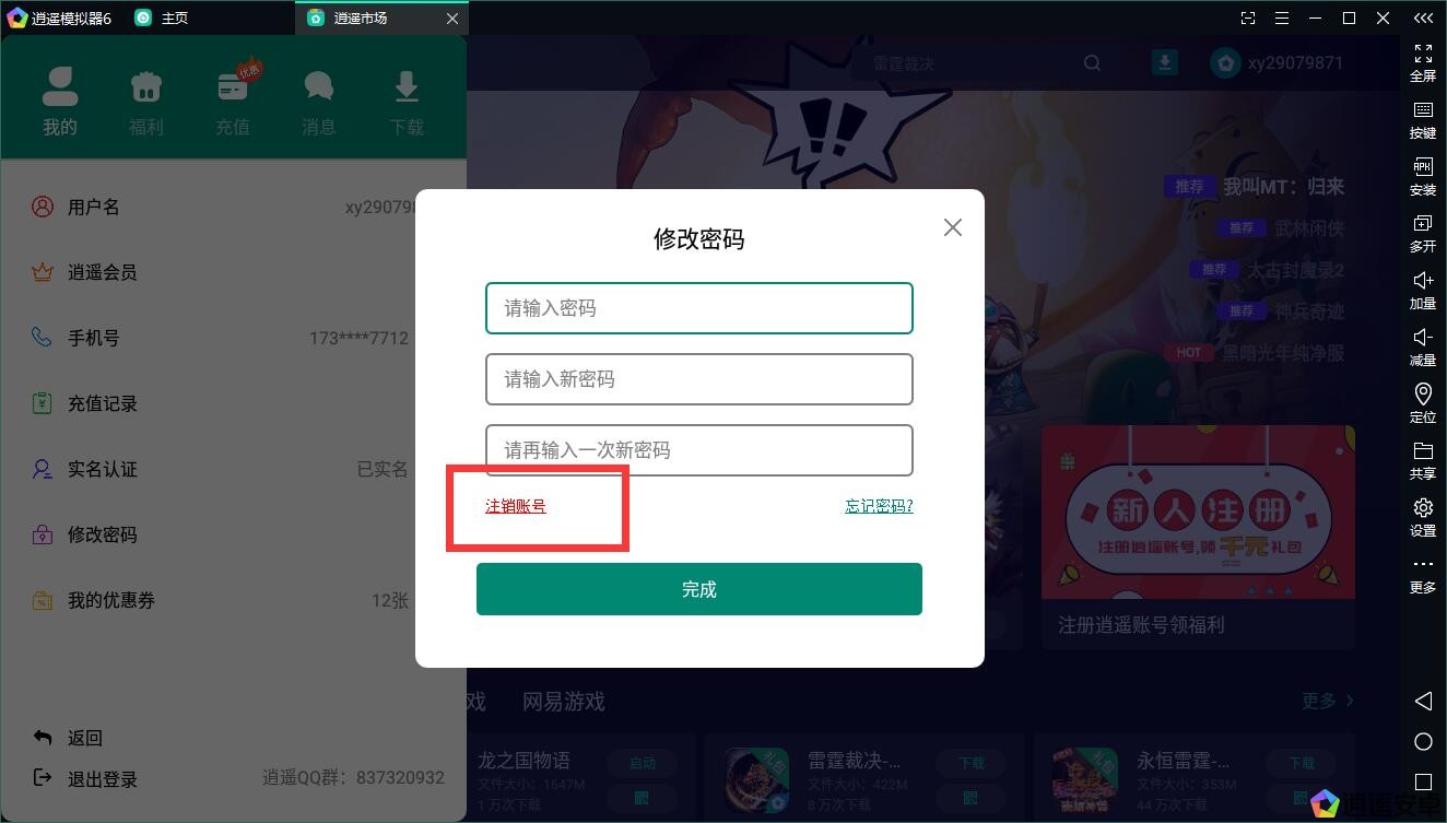 【逍遙賬號(hào)】如何注銷賬號(hào) 最近修改日期:2024-2-21 逍遙官方提供逍遙賬號(hào)注銷服務(wù):但是在注銷前您需了解,一旦注銷賬戶,該賬戶下的所有信息(包括所有的游戲數(shù)據(jù)、手機(jī)號(hào)信息、身份實(shí)名信息、賬號(hào)充值信息等等將一并注銷刪除, 且官方也無(wú)法進(jìn)行找回與查看,注銷前請(qǐng)慎重確認(rèn)) 1、打開逍遙市場(chǎng),登錄你需要注冊(cè)的賬號(hào);2、點(diǎn)擊賬號(hào),彈出右側(cè)賬戶主頁(yè),點(diǎn)擊修改密碼 3、點(diǎn)擊注銷賬戶,按照注銷流程提示即可完成注銷。 一旦注銷成功,所有數(shù)據(jù)將全部抹除,官方亦無(wú)法找回,請(qǐng)慎重?。。?/strong>