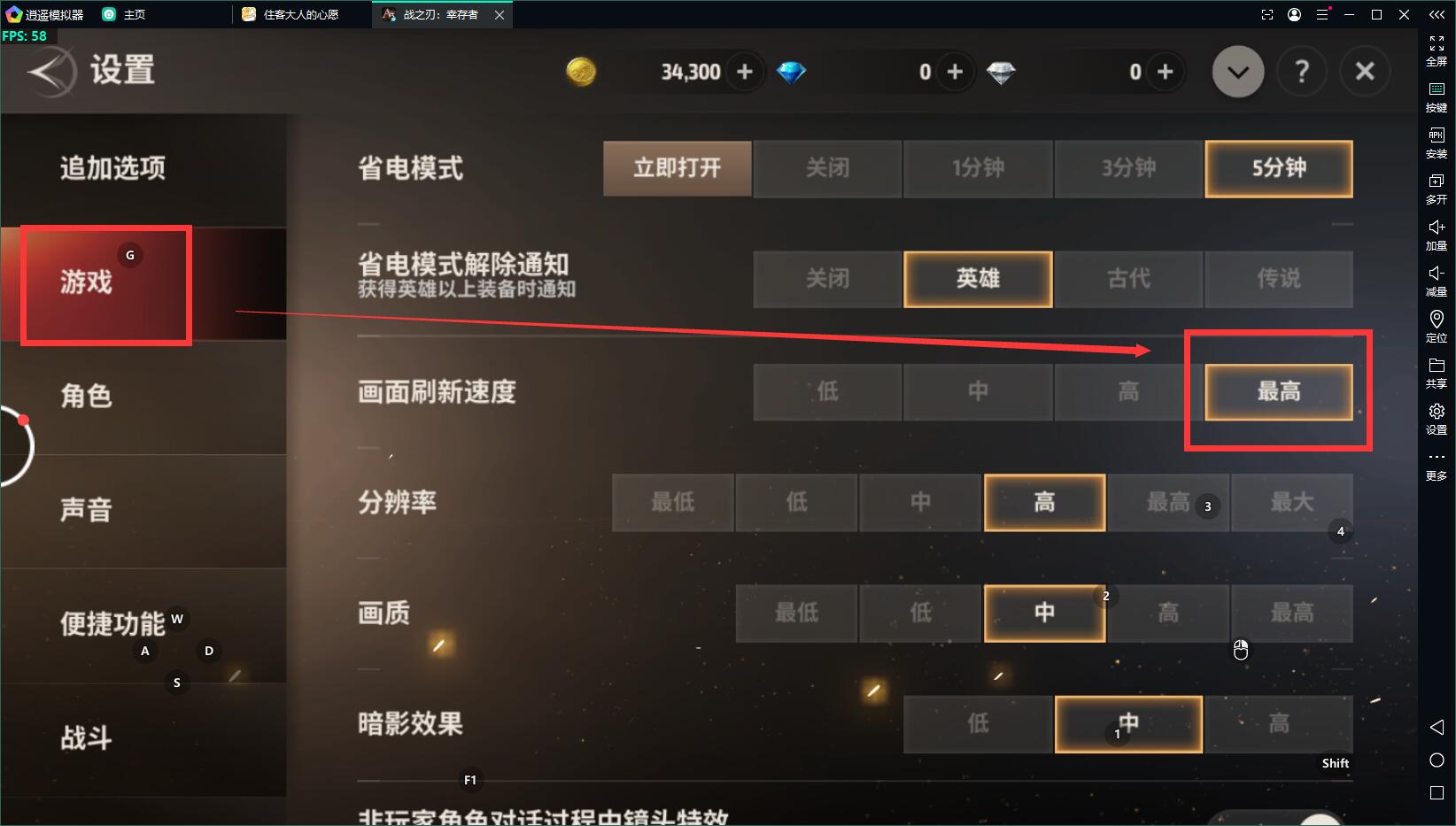 【戰(zhàn)之刃幸存者】開啟60幀教程 最近修改日期:2024-2-21 進(jìn)入游戲升到8級之后會出現(xiàn)菜單欄,從菜單欄點進(jìn)設(shè)置界面 在畫面刷新速度勾選“高”即可
