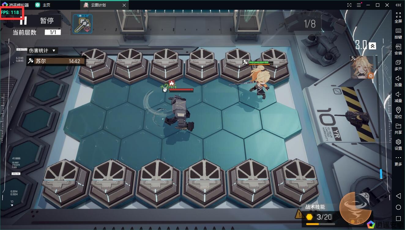 云圖計(jì)劃開啟120幀教程 最近修改日期:2024-2-21 1、到官網(wǎng)下載新版本 2、打開模擬器右側(cè)側(cè)邊欄“設(shè)置”,在“顯示”中選擇“120幀”模式,點(diǎn)擊確定之后重啟模擬器。 3、進(jìn)入游戲之后可以看到幀率已達(dá)到120幀。