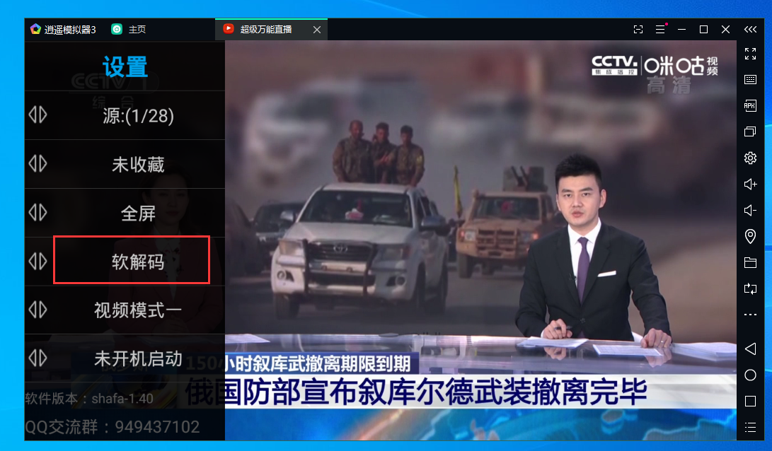 2.APP設(shè)置 解碼方式 切換 軟件碼(在app設(shè)置里 如果不設(shè)置 軟解碼 播放會(huì)黑屏)圖下