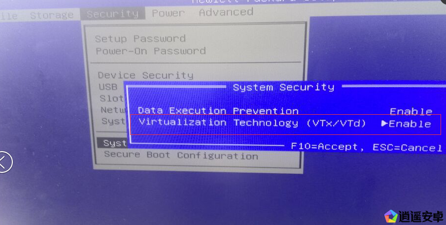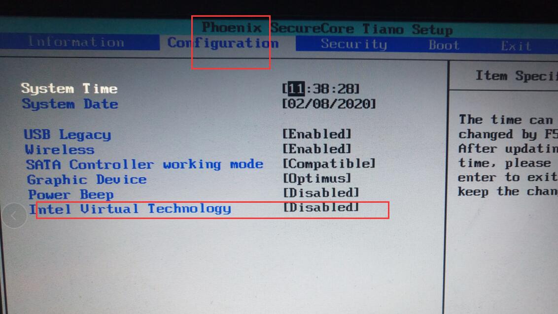 將virtualization technology 勾選選中,完成后按F10選yes保存設置退出,筆記本會自動重啟。