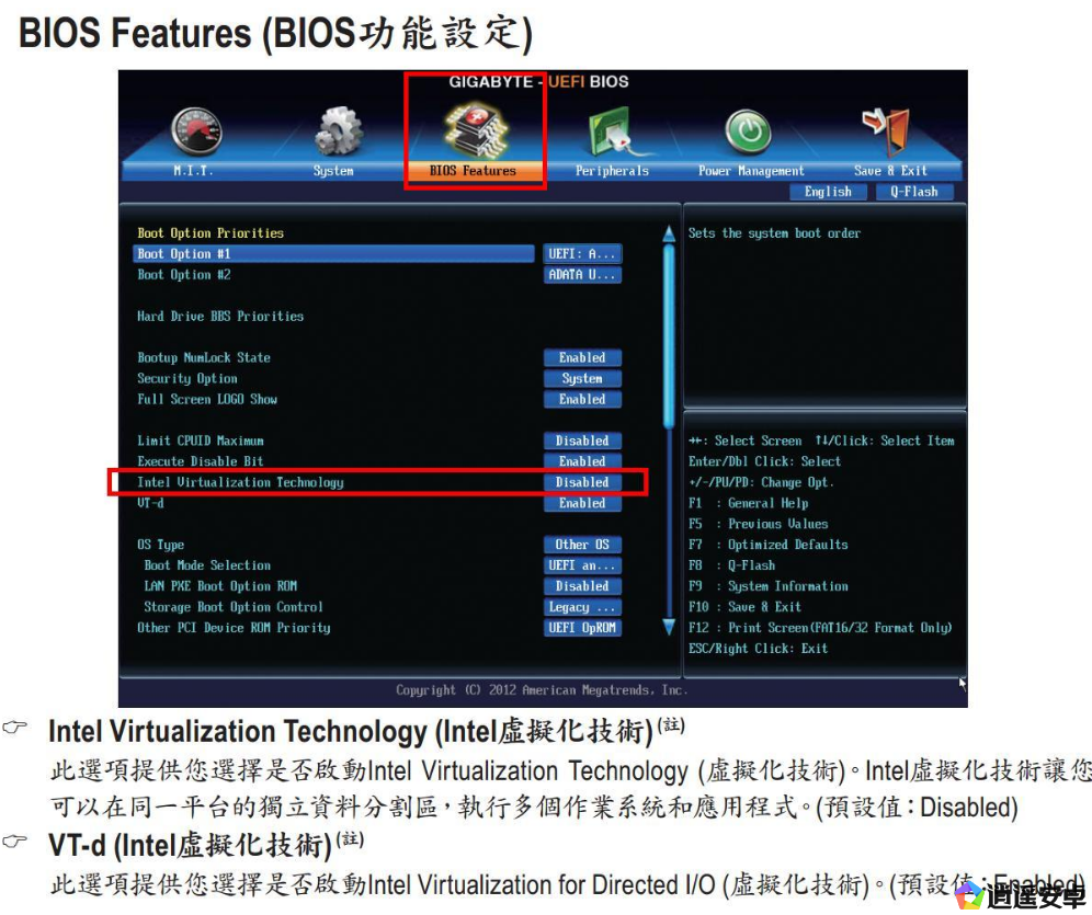 將 Intel Virtualization Technology(Intel虛擬化技術(shù)),把它改為Enabled