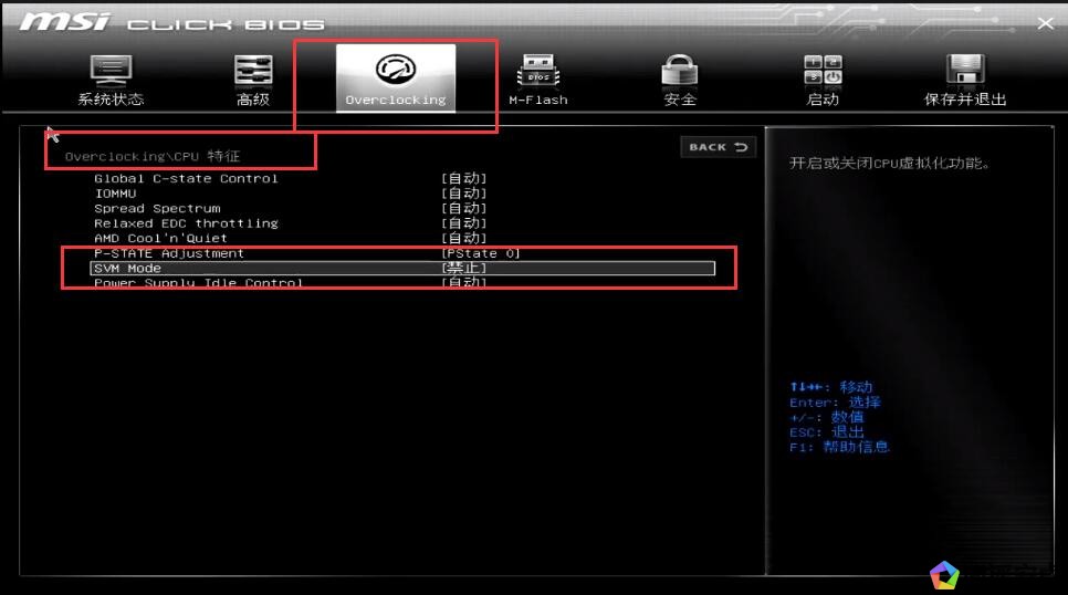 微星主板 AMD CPU 虛擬化設置 名字叫Svm mode