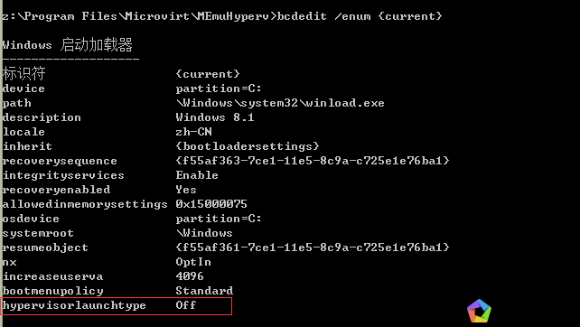 1)運(yùn)行 bcdedit /enum {current} 記下 hypervisorlaunchtype