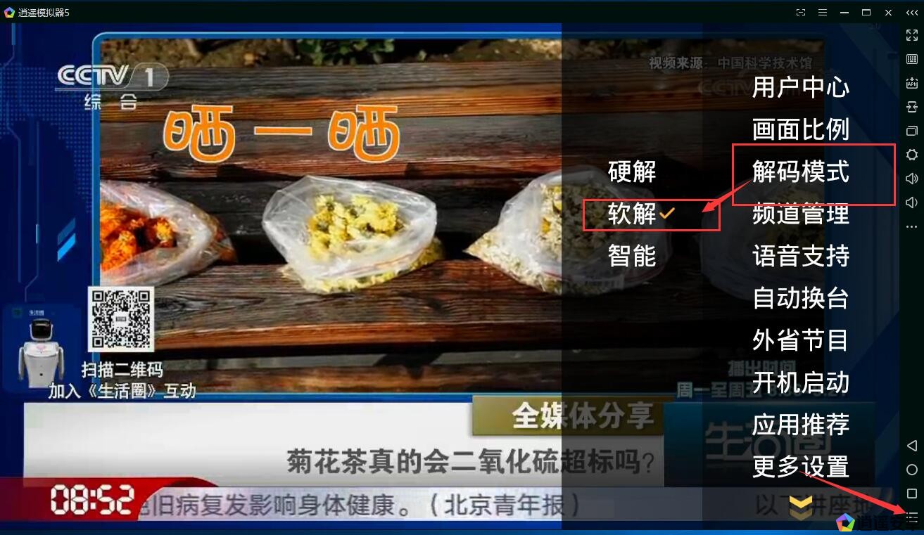 點(diǎn)擊 菜單→ 解碼模式→ 選擇軟解碼