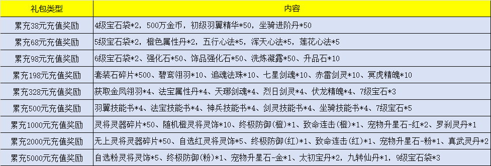 活動說明:單日累充達(dá)到以下實(shí)付RMB金額可以獲得對應(yīng)禮包,檔位可疊加領(lǐng)取,每檔每天最高可獲得一次,達(dá)到活動條件需要聯(lián)系客服申請