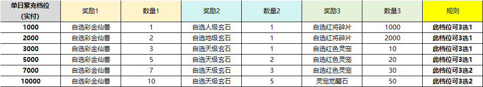 2、單日累充至指定檔位,可自選檔位內(nèi)的獎勵