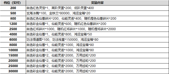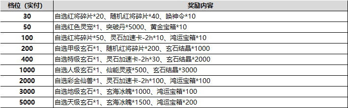 【活動規(guī)則】活動為終身累充活動,活動期間內(nèi)按0.1折后真實(shí)充值金額,滿足對應(yīng)檔位充值后即可領(lǐng)取,每個(gè)檔位終身僅能領(lǐng)取一次。