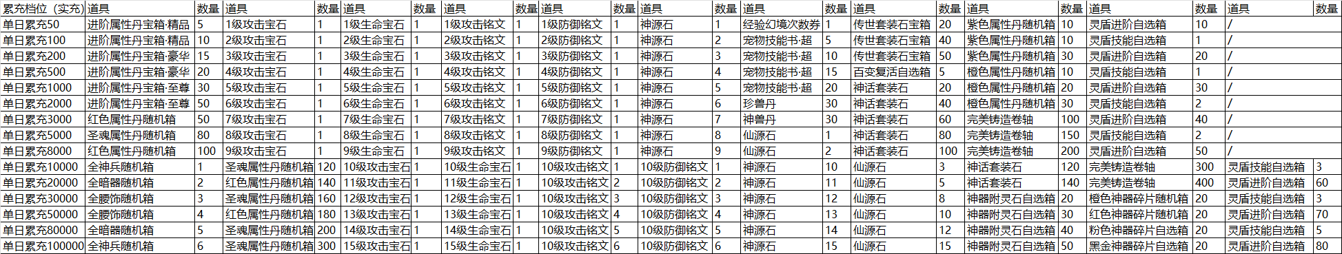 單日真充5000以上可以咨詢客服溝通額外定制道具(滿足后具體參考道具表)