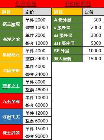 1000元:仙羽之靈*60+仙羽之魂*60+仙羽之心*10+冰霜神翼(SS翅膀)