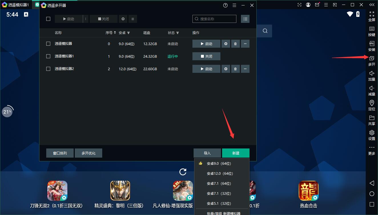 打開(kāi)模擬器或者使用桌面上的多開(kāi)工具進(jìn)行新建: