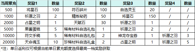 幻星牌 線下活動合集 最近修改日期:2025-9-18 申請方式:工作日添加QQ:3436085915,備注“幻星牌”申請,節(jié)假日順延活動一、單日返利禮包活動二、終生累充返利禮包線下返利規(guī)則: 1、單日累充返利:單日累充滿足充值條件可選最高一檔累充獎勵,單日計算累充只可選擇其中固定一個充值檔位,例:單日充值2000,可申請當單日累充2000/1000/500 其中一檔,不可重復領(lǐng)取 2、終生累充返利:查詢玩家對應累充金額給予終生累充返利,歷史累積充值檔位終生僅可申領(lǐng)一次 3、根據(jù)對應累充金額聯(lián)系客服獲取線下返利禮包,由客服核實后發(fā)放
