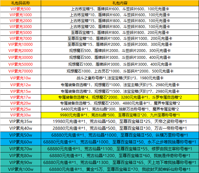 即可獲得100W靈符+上古靈石*500+材料寶箱*1,按照游戲充值界面以此類推