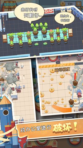點擊屏幕即可破壞一切,輕松簡單的操作方式讓你發(fā)泄自身的怒火,跨越障礙,破壞無良老板們的辦公室吧!
